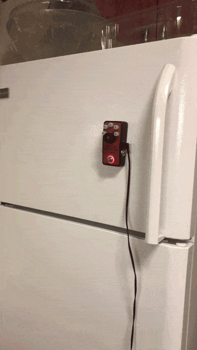 Magnetized so your pedal will stick to a pedal board, music stand or even a refridgerator.